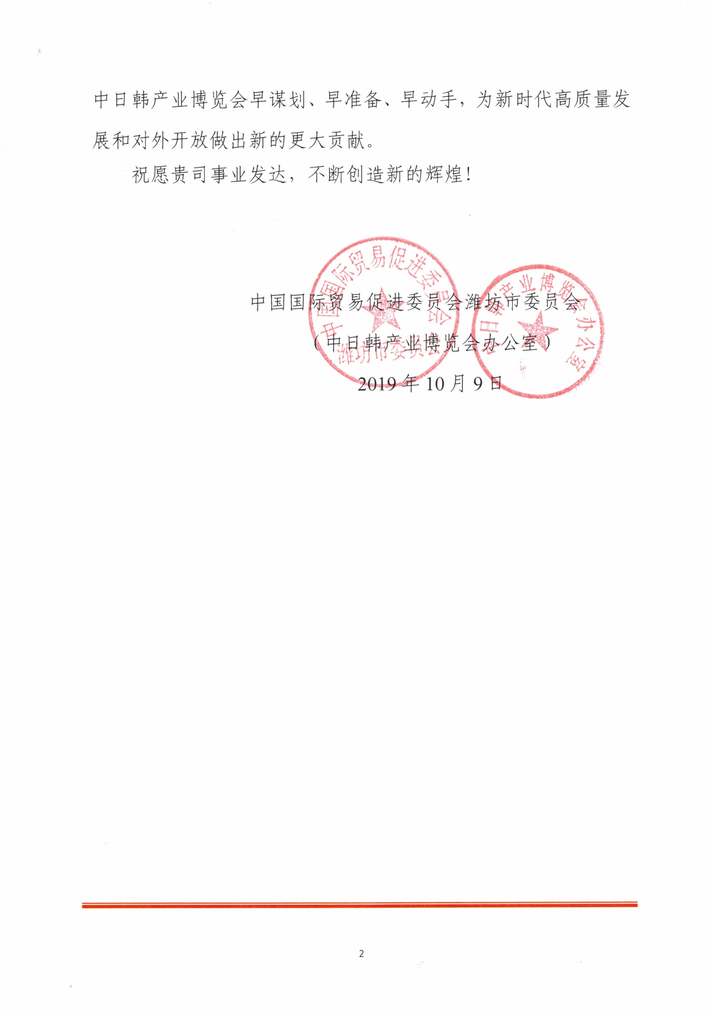 日前,齊信收到來自中日韓產(chǎn)業(yè)博覽會辦公室發(fā)來的感謝信,對齊信給予博覽會各項(xiàng)工作的支持及付出的努力表示衷心感謝。9月22日,第五屆中日韓產(chǎn)業(yè)博覽會暨第二屆中日韓貿(mào)易投資洽談會圓滿落幕。齊信作為本屆博覽會第三方服務(wù)的中標(biāo)執(zhí)行單位,全程深度參與了招展招商審核確認(rèn)等工作。齊信專業(yè)的服務(wù)團(tuán)隊(duì)和敬業(yè)擔(dān)當(dāng)精神得到了主辦單位及有關(guān)政府部門的高度認(rèn)可。