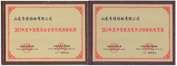 在中國采購與招標(biāo)網(wǎng)與中國名企排行網(wǎng)舉辦的“2014(第八屆)全國招投標(biāo)領(lǐng)域年度聚焦活動(dòng)”評(píng)選中,齊信公司連續(xù)第八屆入選“中國最具競(jìng)爭(zhēng)力招標(biāo)機(jī)構(gòu)”;