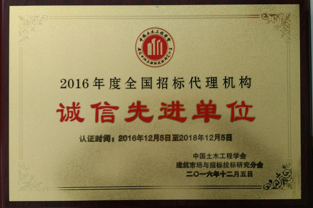中國土木工程學(xué)會建筑市場與招投標(biāo)研究分會在全國行業(yè)范圍內(nèi)開展了“2015-2016年度全國建設(shè)工程招標(biāo)代理機(jī)構(gòu)誠信先進(jìn)單位”評選表彰活動。經(jīng)各省、自治區(qū)、直轄市相關(guān)部門組織初審,嚴(yán)格把關(guān),評選推薦并報(bào)中國土木工程學(xué)會建筑市場與招標(biāo)投標(biāo)研究分會全國建設(shè)工程招標(biāo)代理機(jī)構(gòu)專家咨詢委員會評審,最終評選出全國“誠信先進(jìn)單位”,山東齊信招標(biāo)有限公司獲得了本次“誠信先進(jìn)單位”的榮譽(yù)稱號。